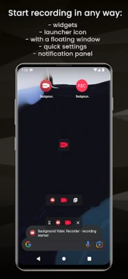 Application to record video in the background using a widget, quick settings button at the notification panel or floating window which appears on the top of all other applications.