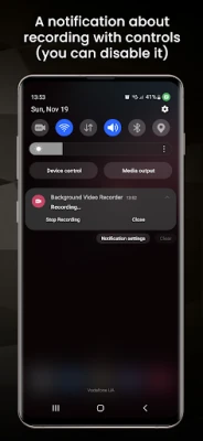 - Background video recording - you can continue recording when the application is minimized and use other applications at the same time that do not use the camera.