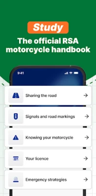 • 14+ practice quizzes for each section of the official RSA motorcycle handbook