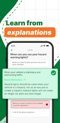 • Motorbike theory test practice that helps you connect questions with the right rules