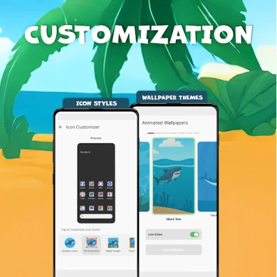 Customize your device with Fin Evolution Launcher Plus, featuring themed styles and unique customization options. Enjoy easy access to a variety of casual games, along with many more personalization features that elevate your home screen and overall device interface.