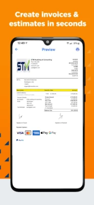 Create instant invoice via professional invoice maker with templates to include your company logo, brand color, and information. Send invoices quickly before leaving your customer. Use the pre-existing invoice templates and receive a read notice.