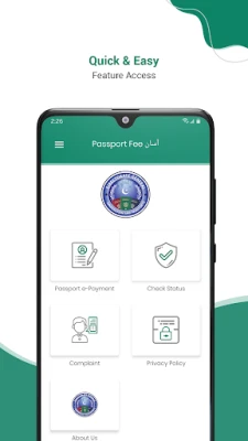 - Payment e-Payment User(s) can Calculate Passport Fee with simple & easy Wizard to choose suitable options as per his/her own travel requirements and generate Payment Challan (PSID). This PSID can be paid instantly via ATM, Internet-Banking, payment over the counters (POC) or 1-link member bank branches . - Complaint User can launch a complaint about payment process, right away from this app and get it resolved. - Check Status User can inquire the status of his/ her passport fee Payment with few taps in real time environment.