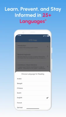 This app provides necessary information about Sexually Transmitted Disease and Infections (STD) and it is available in more than 25+ different languages.
