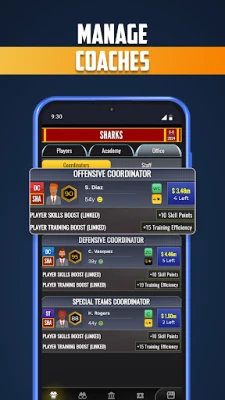• Hire and manage your coaching staff, including coordinators and support personnel